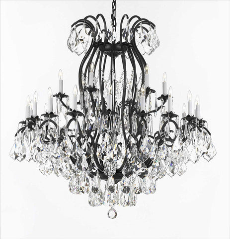 • Set of 3 - 2 Wrought Iron Wall Sconce Crystal Lighting 3 Tier Wall Sconces W16 x H24 and 1 Wrought Iron Crystal Chandeliers Lighting Empress Crystal (TM) H46 W46 Perfect for an Entryway or Foyer!